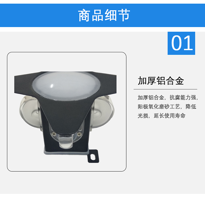 2、一體化精工壓鑄鋁底座,可自由調(diào)控角度