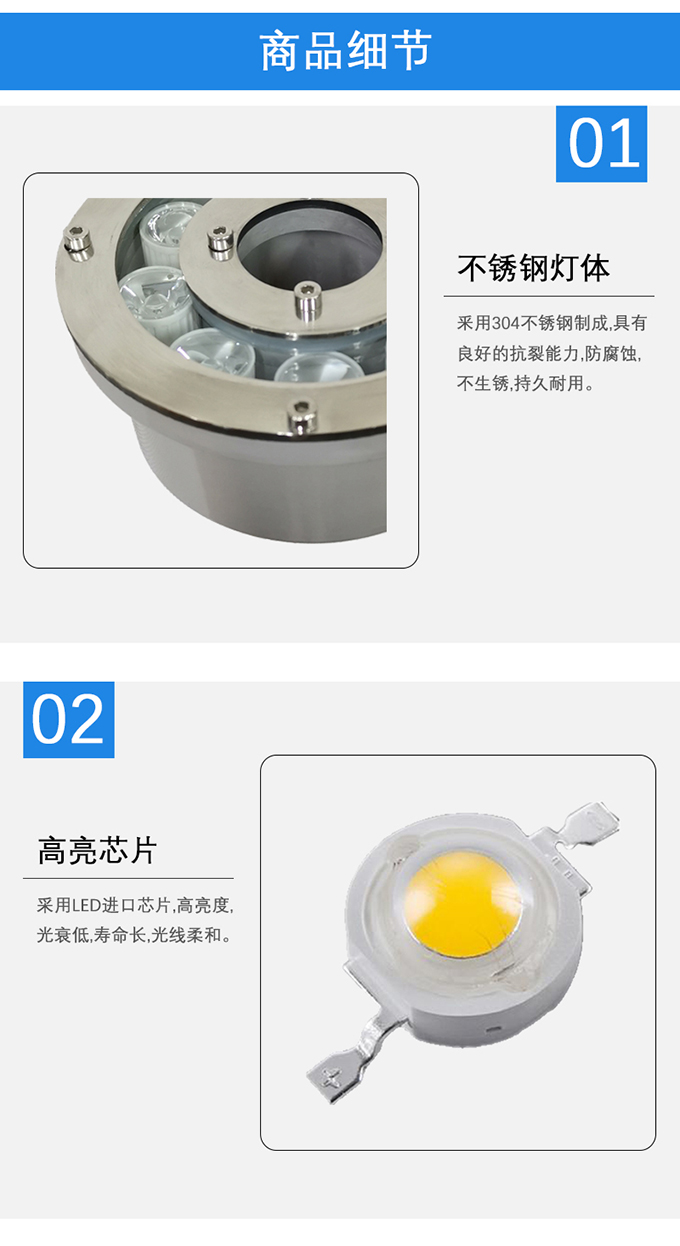 2.采用LED進口芯片,高亮度,光衰低,壽命長,光線柔和。